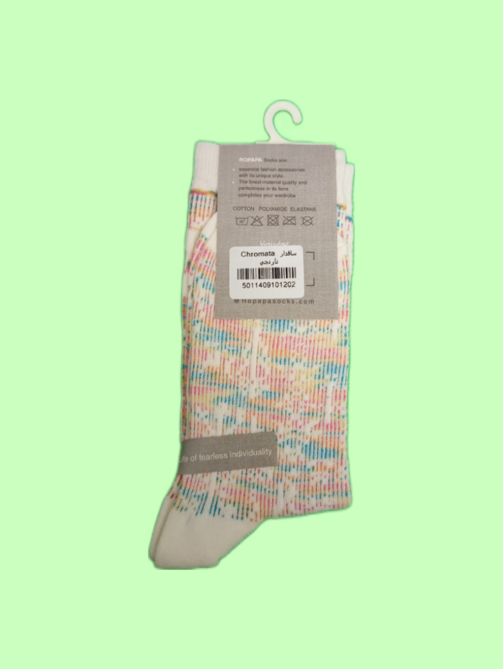 جوراب ساقدار زنانه روپاپا مدل کروماتا(chromata) با بافت نرم و کشسانی عالی یکی از محبوب ترین جوراب های موجود در بازار است.از ویژگی های این جوراب عطری بودن آن است که احساس متفاوت و خوبی را به شما می دهد.این محصول از درصد پنبه،پلی آمید و الاستین تهیه و تولید شده که باعث تنفس پذیری بیشتر پا و مقاومت بیشتر جوراب می شود.جوراب بارکد دارای تقویت دوخت در قسمت پاشنه و پنجه می باشد تا در این نقاط افزایش دوام و جلوگیری از ساییدگی زودهنگام را داشته باشید.